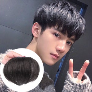 하이유니 인모 남성 앞머리 똑딱핀 탑커버 붙임머리 헤어 피스 부분 가발 네츄럴블랙 1개
