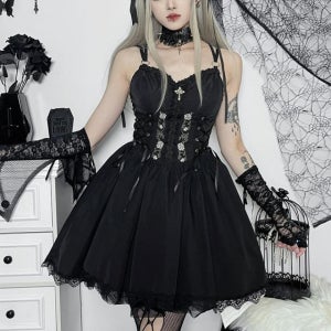 공주풍 고딕 고스룩 코르셋 십자가 초커 원피스