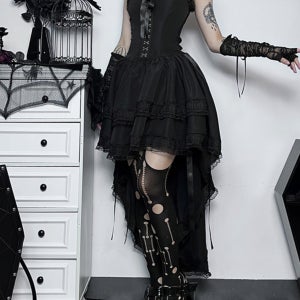 고딕 블랙 고스룩 로리타 락시크룩 코르셋 허리 튜브탑 캉캉 테일 드레스