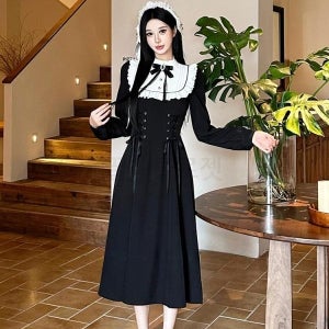 중세시대풍 고스룩 드레스 고딕 프렌치 다크 블랙 백코르셋 고스로리 롱 원피스