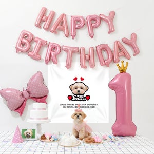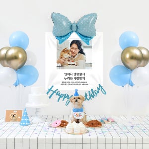 강아지 고양이 생일파티 반려동물 돌상 잔치 현수막 애견 블루리본세트