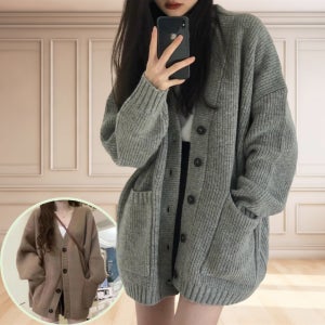 여성 여리여리 무드 루즈핏 오버핏 니트 봄 가을 간절기 여자 롱 가디건 학생 교복 빅포켓