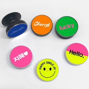 그립톡제작 스마트톡 굿즈 원형 형광 레터링 문구 휴대폰거치대 이지그립