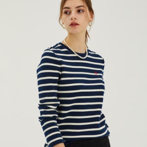 [헤지스 여성] [스테디셀러]네이비 스트라이프 면혼방 긴 소매티셔츠 WSTS4D020N3