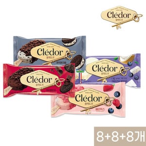 빙그레 끌레도르 프리미엄 아이스크림바 4종 24개 (8+8+8개) /바닐라/쿠키앤크림/베리믹스