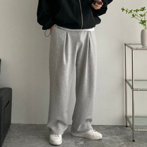 남자트레이닝팬츠 주름 벌룬핏 회색트레이닝바지 원턱와이드팬츠