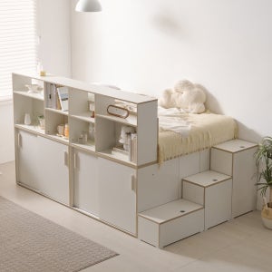 로암 파티션 슬라이딩 수납형 벙커 평상형 슈퍼싱글 높은 침대 프레임