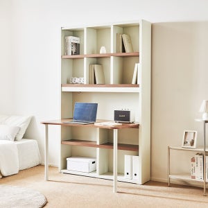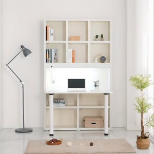 동서가구 프라임 LPM 독서실 책상 1200 정면책상 책장 세트 DF908134 크림화이트[18T] 1200*280*1970
