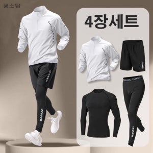 꽃소담 4종세트 남자 빅사이즈 기능성 긴팔 운동복 남성 런닝복 헬스복 트레이닝복 세트 화이트(4종세트) 3XL(70-83)