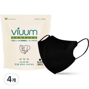 viuum 곰하늘날다 에코플러스 보건용 마스크 대형 KF94 25개입 4개 블랙