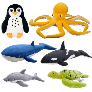 이케아 블로빙아드 돌고래 범고래 거북이 문어 펭귄 인형 쿠션 동물 애착 어린이 거북이 44cm 305.221.02 1개