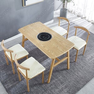 인덕션 테이블세트 4인 고기 캠핑장 식당 탁자 바베큐 인덕션식탁 테이블 직사각형 다이닝 4인용 1cm H_0.8x1.2m 황목무늬 테이블4의자