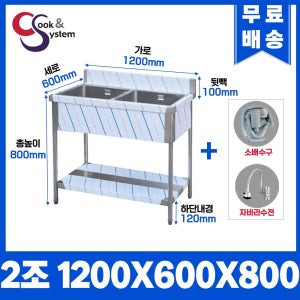 업소용싱크대 수전 소배수구 포함 업소용개수대 볼2개 1200x600x800