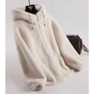 JoYouth 천 양털 양모 100 후드 코트 루즈핏 램스울 따뜻한 겨울 집업 자켓 오프화이트 S (60kg 이내)