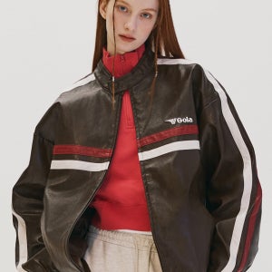 [원더플레이스 GOLA] LINE POINT LEATHER JUMPER [BROWN]