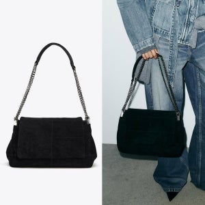 자라 스플릿 스웨이드 레더 체인 숄더백 블랙