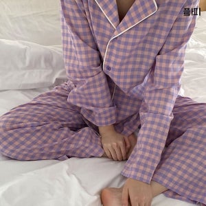 여성 순면 체크 잠옷 상하 세트 (6color)