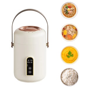 SMABAT 다용도 전기 밥솥 휴대용 도시락 보온밥솥 1-2인용 캠핑용밥솥 세라믹 내솥 영어 패널 베이지