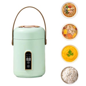 SMABAT 다용도 전기 밥솥 휴대용 도시락 보온밥솥 1-2인용 캠핑용밥솥 세라믹 내솥 영어 패널 그린