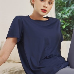 에센셜 핫요가복 티셔츠 면티셔츠 필라테스반팔상의 다크네이비