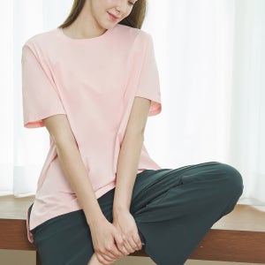 에코텍 루즈핏 필라테스긴팔상의 헬스복상의 티셔츠 페일핑크 필라테스반팔상의