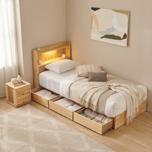 아리온 수납 침대 싱글 1인용 서랍 원룸 미니 작은 초등 LED 프레임 960 960오픈LED(서랍형)-내추럴
