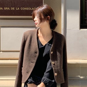 여성 울 트위드 자켓 노카라 세미크롭 브라운 블랙 빅사이즈 가을 하객 재킷 오피스룩