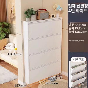 슬림 신발장 12cm 틈새 수납 접이식 초박형 1단 흰색-4겹-655x152x1362mm