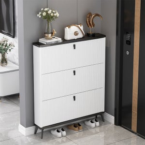 YAPOGI 북유럽풍 수납장 신발정리대 슬림 신발장 좁은 현관 신발장 3단 화이트50CM